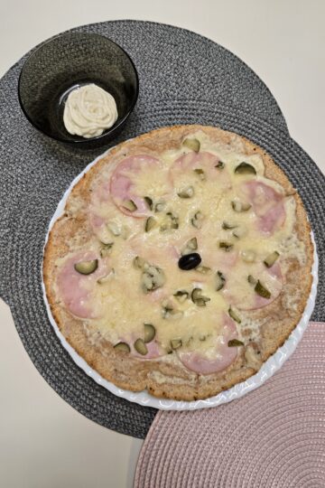 Very quick tortilla pizza with parmigiano cream. Will love it. Very tasty cream and the result is fantastic.