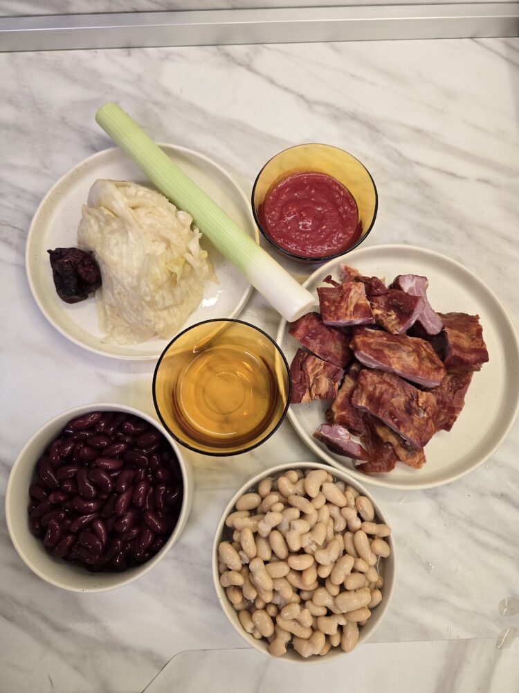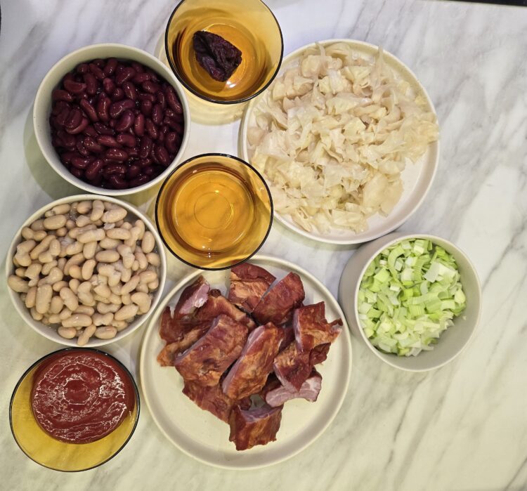 minutesThese smoked ribs with bean, leek onion and cabbage are fantastic. The two types of bean gives it unique taste. Especially the red one is so sweat. On the other hand, the cabbage imparts a sour tinge. Very interesting combination for these of you that likes sour and lite sweet combination. Total of time for preparing this meal is approx. 50 minutes, but it’s worth it.