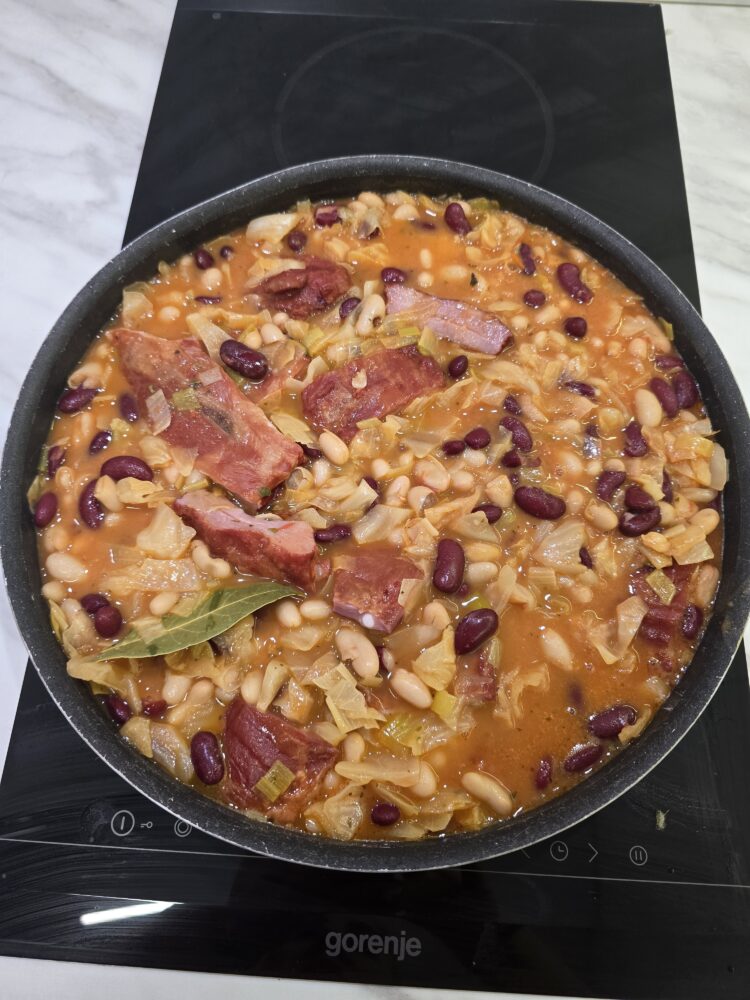 These smoked ribs with bean, leek onion and cabbage are fantastic. The two types of beans give it a unique taste. Especially the red one is so sweaty. On the other hand, the cabbage imparts a sour tinge. Very interesting combination for these of you that like sour and lite sweet combination. Total of time for preparing this meal is approx. 50 minutes, but it’s worth it.